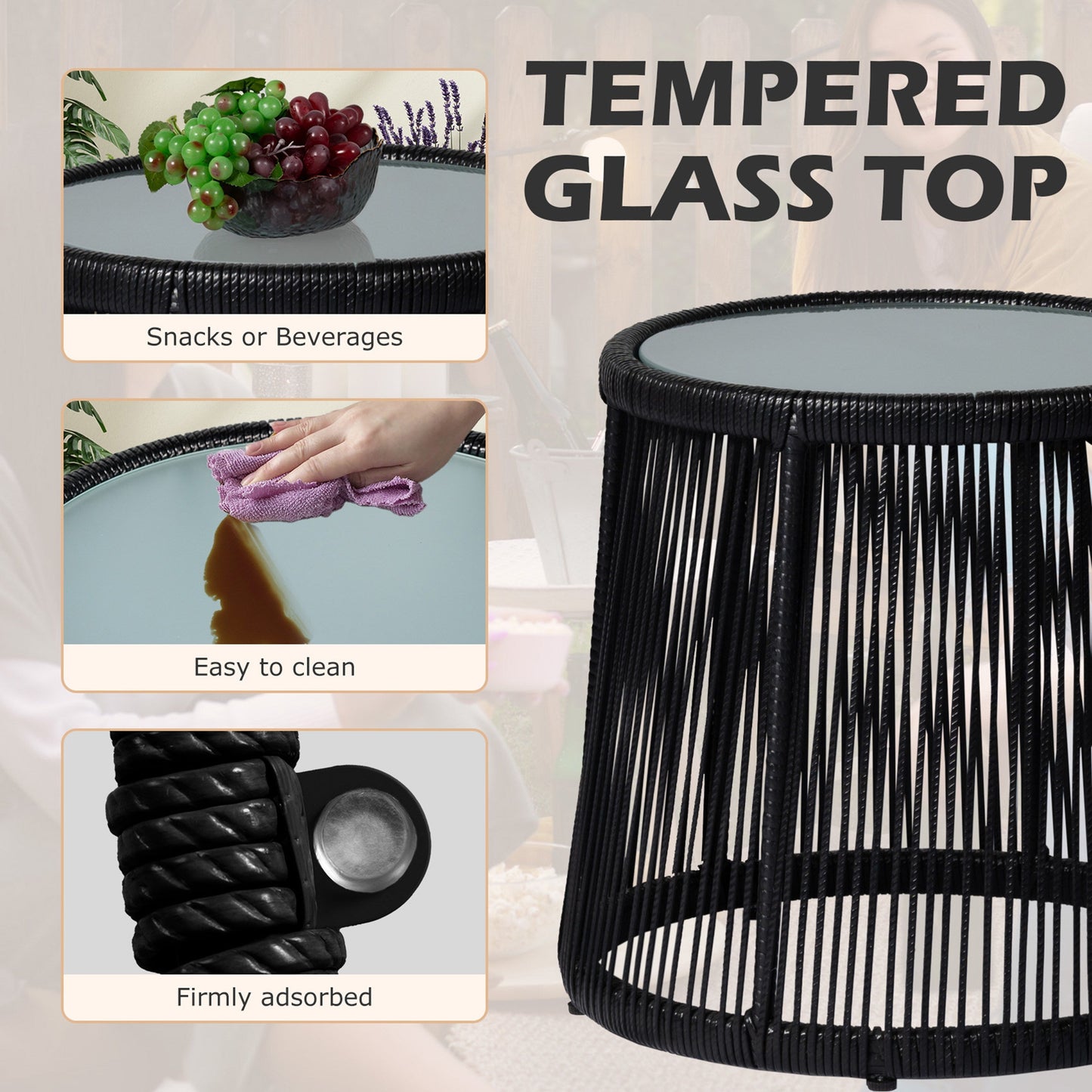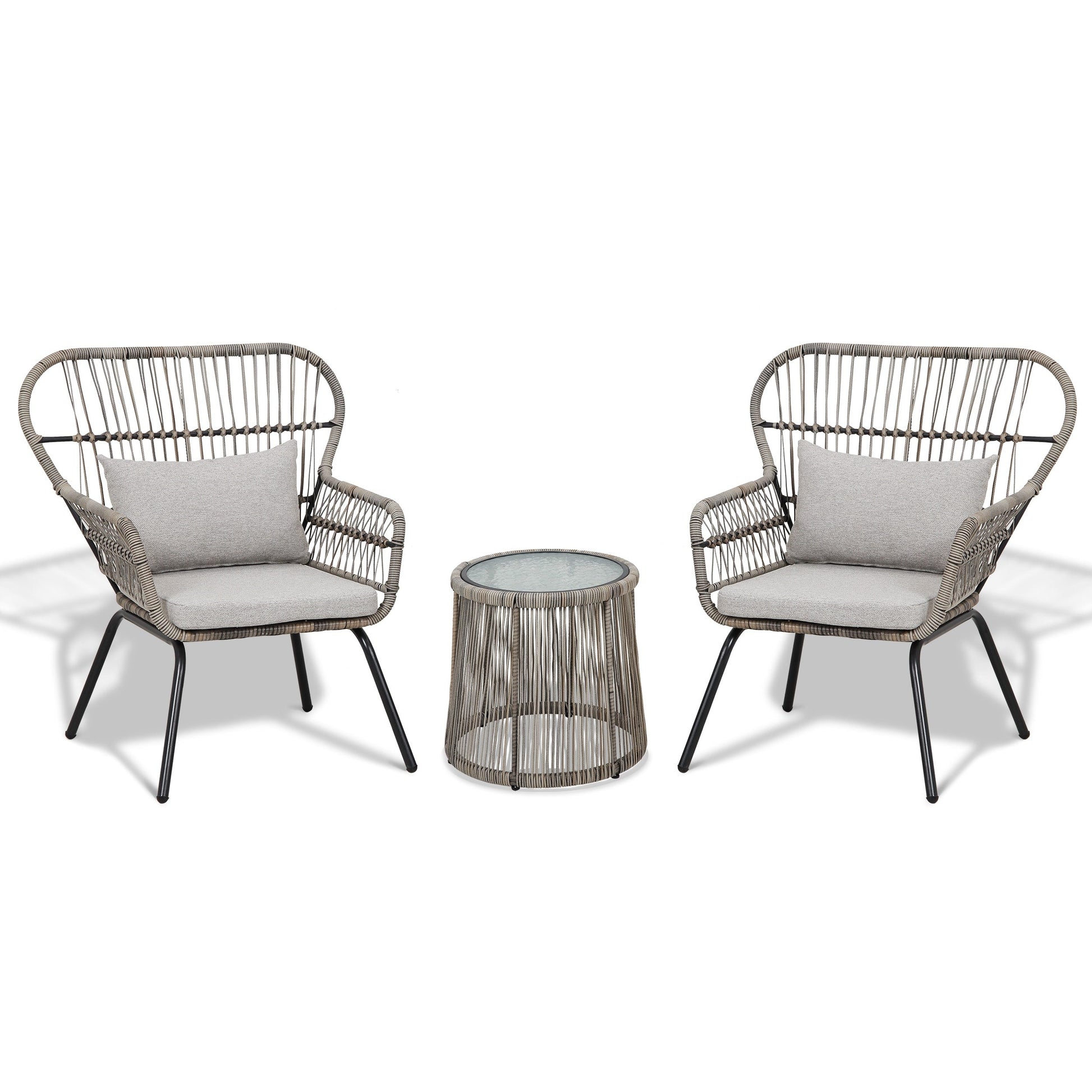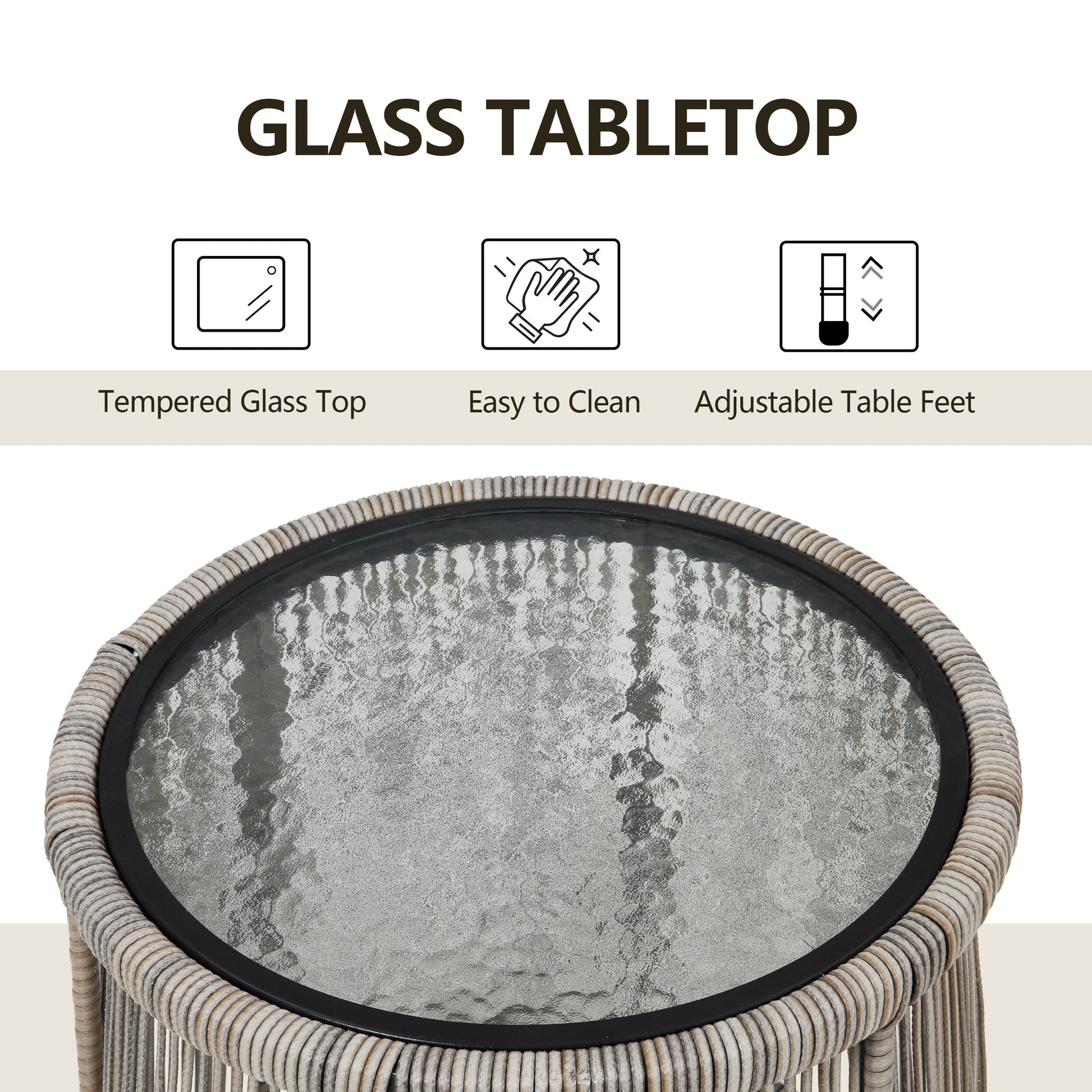 - L'ensemble de bistrot d'extérieur est livré avec 2 chaises et 1 table basse en verre trempé, tendance et élégant, un bon ajout à votre terrasse et vous offre des heures de confort.
