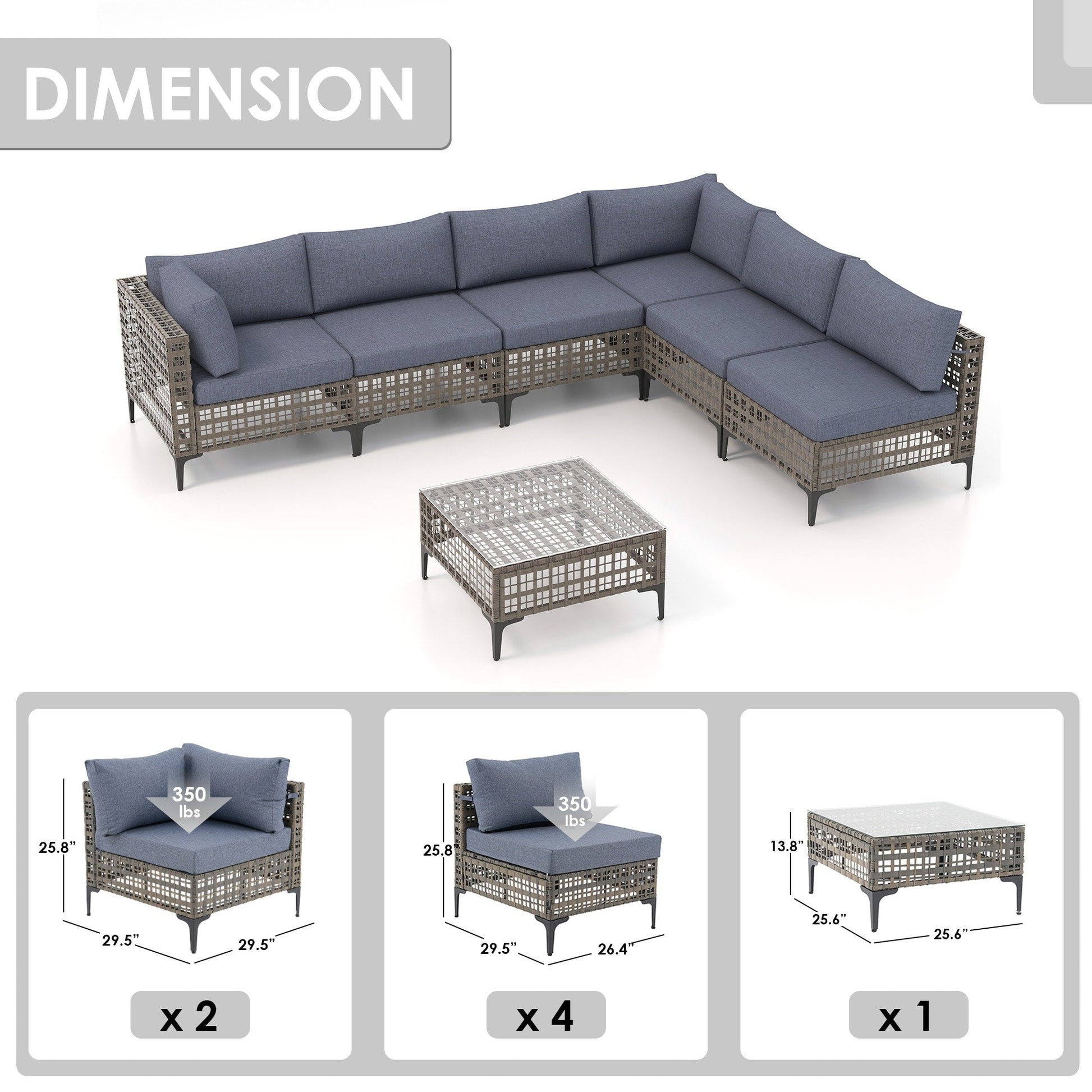 Taille des chaises d'angle : 29,5'' P * 29,5'' L * 25,8'' H