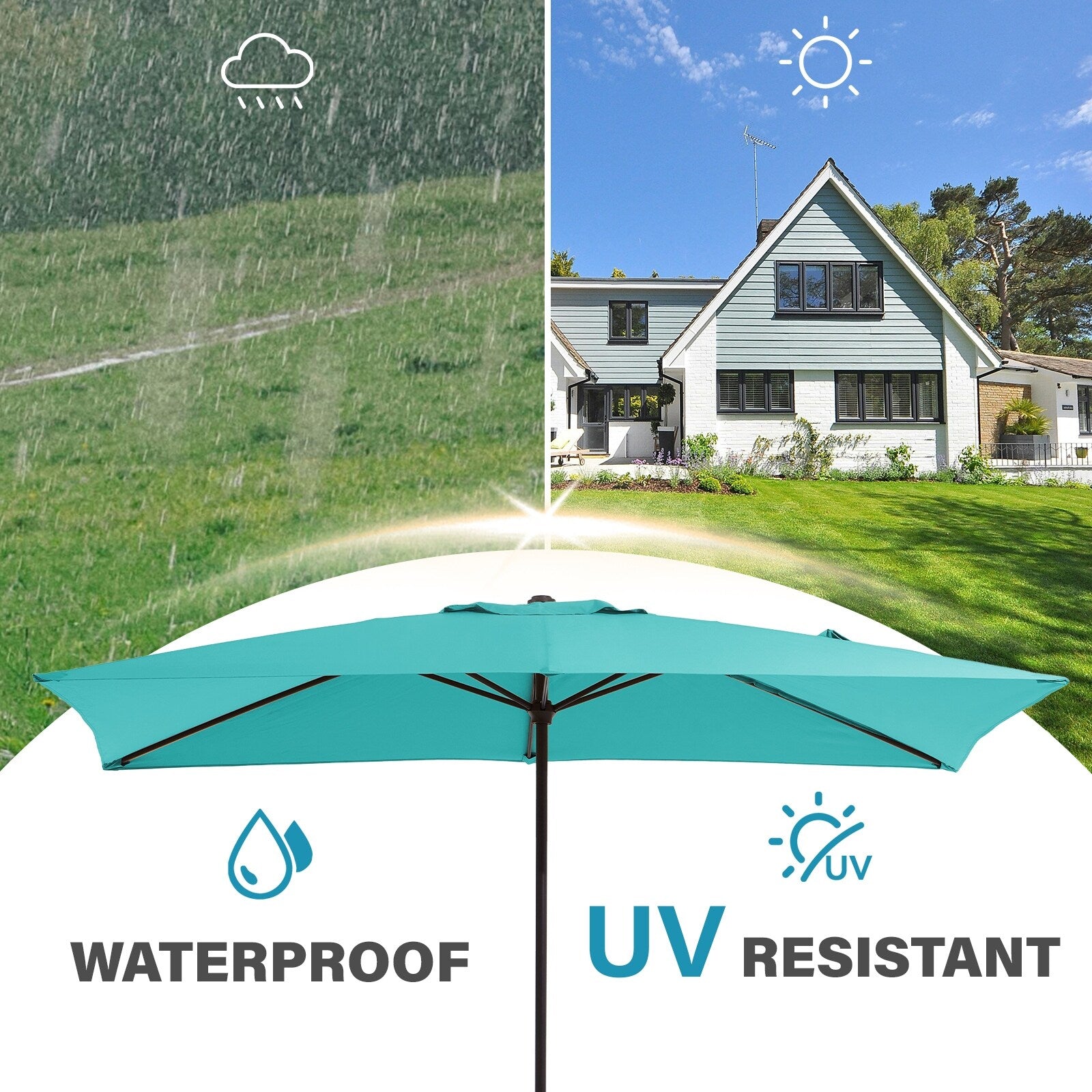 - UV & Water Resistance: Crafted from premium-quality fabric that blocks harmful UV rays and repels water, ensuring reliable protection in sunny or rainy weather.