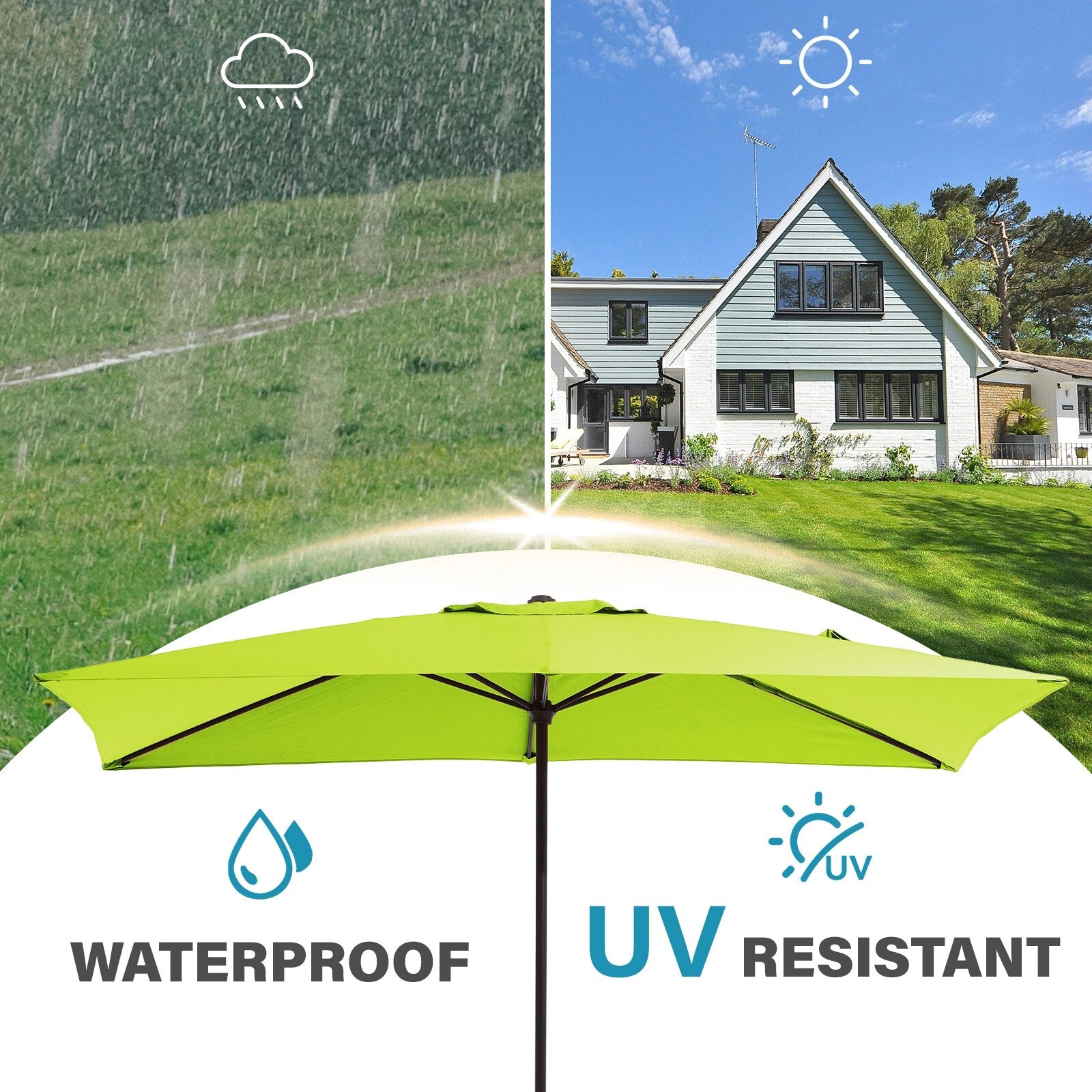 - Spacious Rectangular Canopy: The 8ft canopy provides extended shade coverage, perfect for larger patios, rectangular dining tables, or garden seating areas.