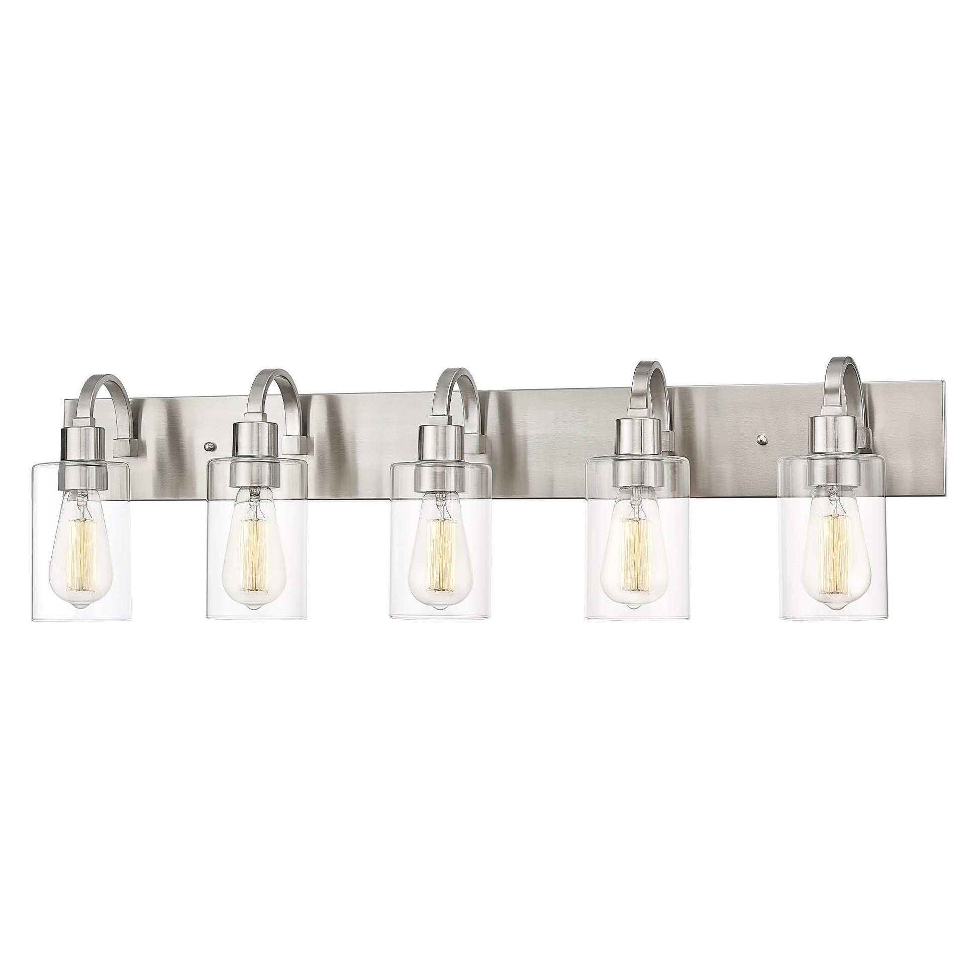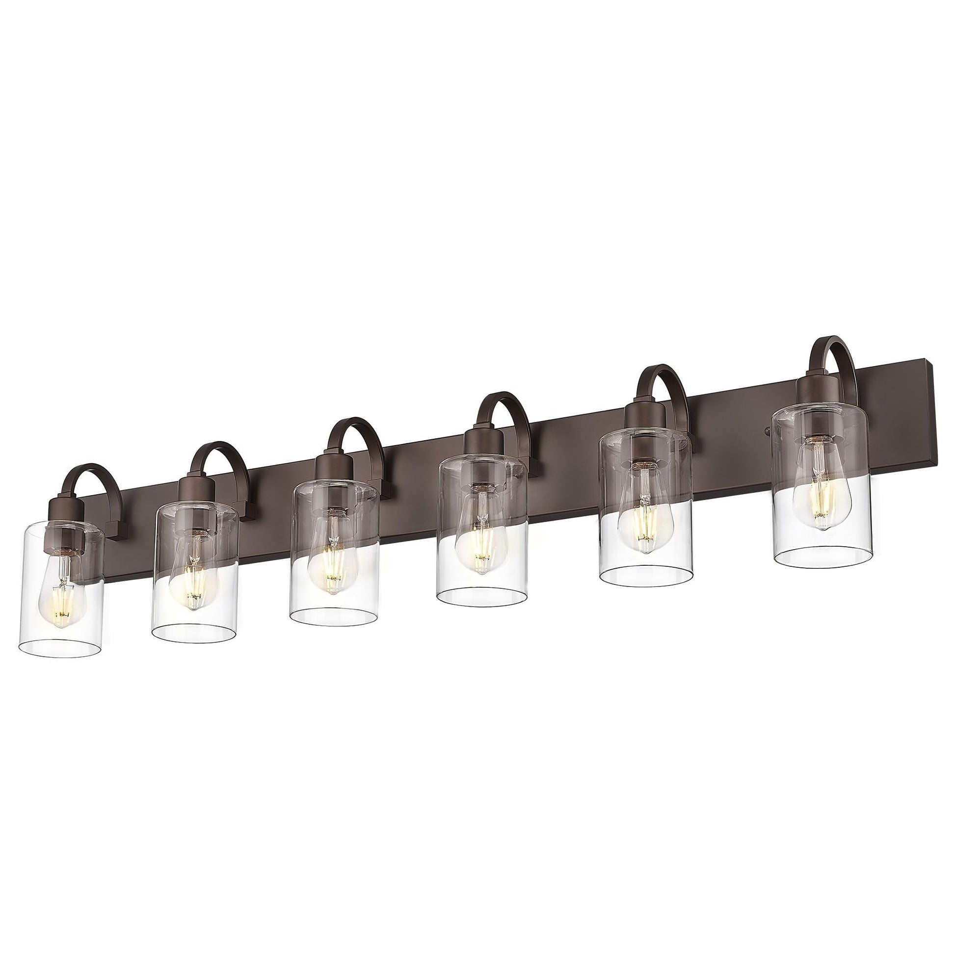 - Luminaire de vanité vintage avec construction en métal robuste en finition bronze huilé et un abat-jour en verre transparent
