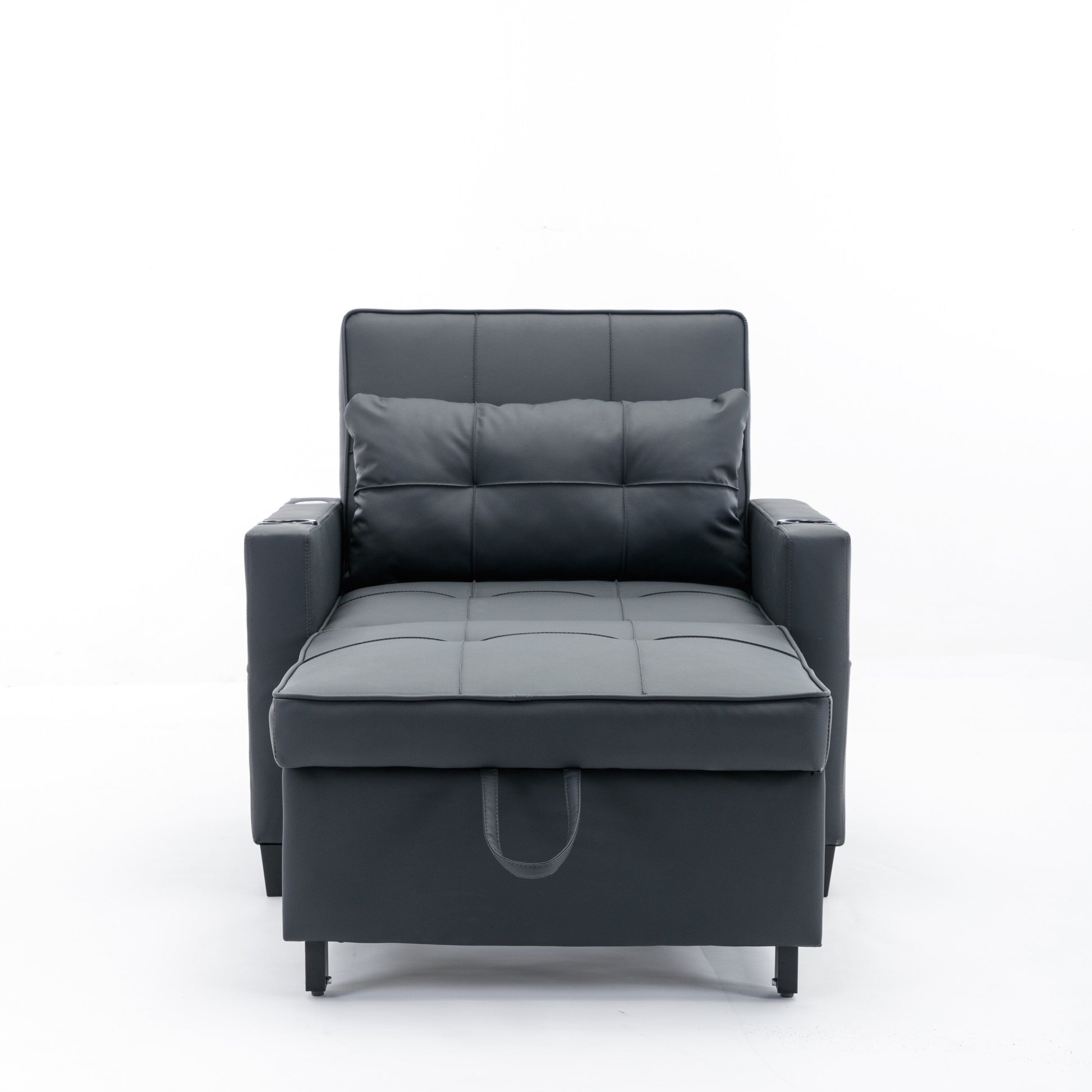 - Le canapé pliant est fabriqué avec une structure en acier de haute qualité, garantissant une durabilité optimale au quotidien et pouvant supporter 150 kg. Son revêtement en cuir respirant, résistant et facile d'entretien, ainsi que son éponge haute densité, vous permettent de vous détendre pleinement, de la tête aux pieds. Des porte-gobelets et des poches latérales intégrés répondent à vos besoins quotidiens. Nous nous engageons à intégrer plusieurs designs ergonomiques pour vous offrir un confort optimal.