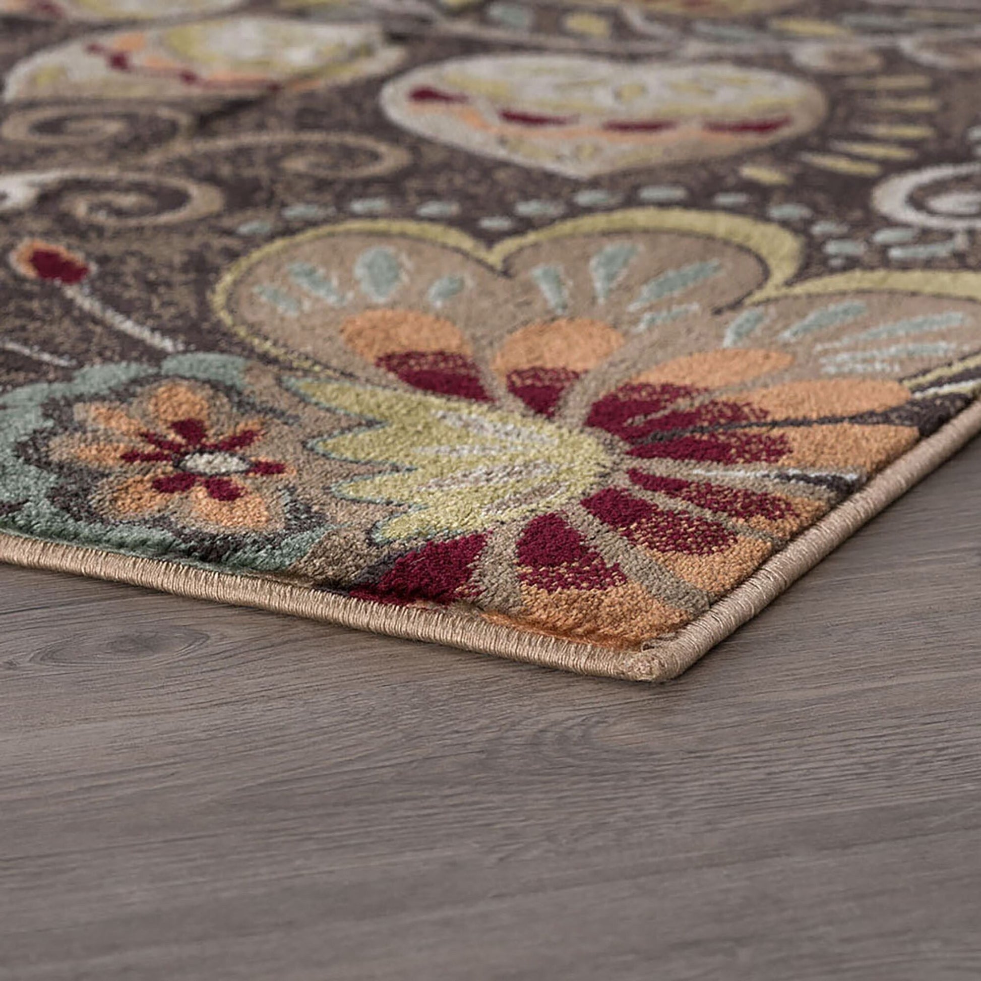 This filigree floral design indoor area rug has a playful boho style that works well with popular farmhouse decor. Quality construction and stain-resistance offer a warm and cozy setting for your living room, dining area, bedroom, or family room.