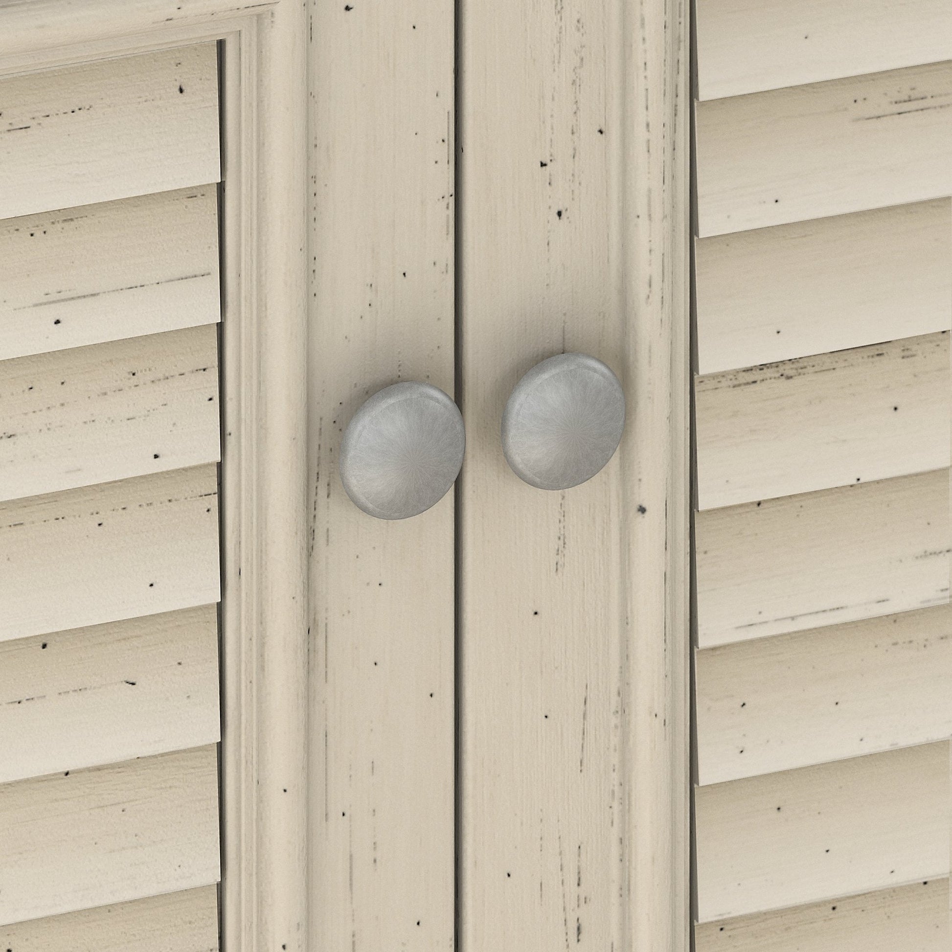 - Les portes d'armoires à persiennes dissimulent des articles ménagers, des fournitures de bureau et plus encore