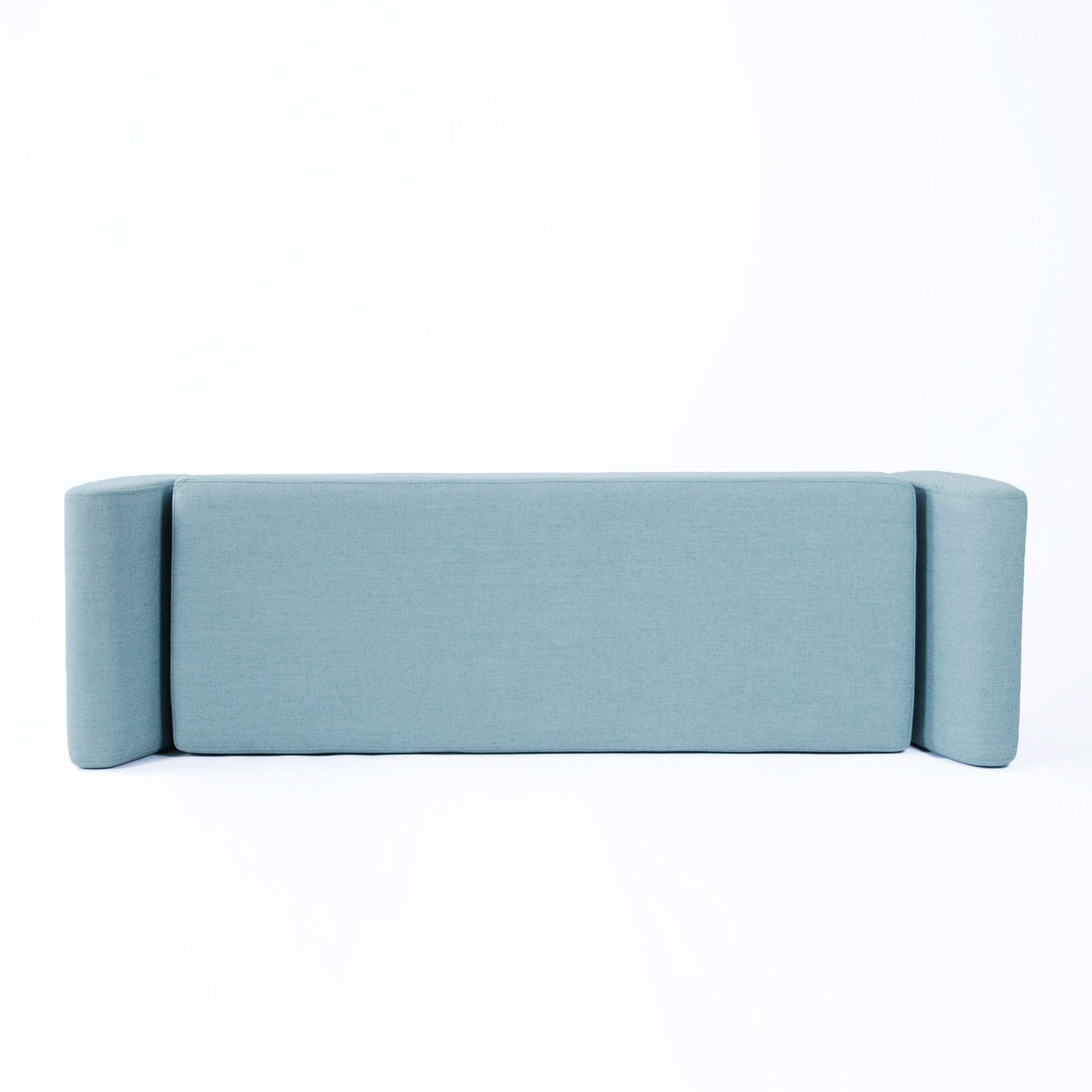 - Tissu tissé bleu français avec pieds en bois au fini naturel