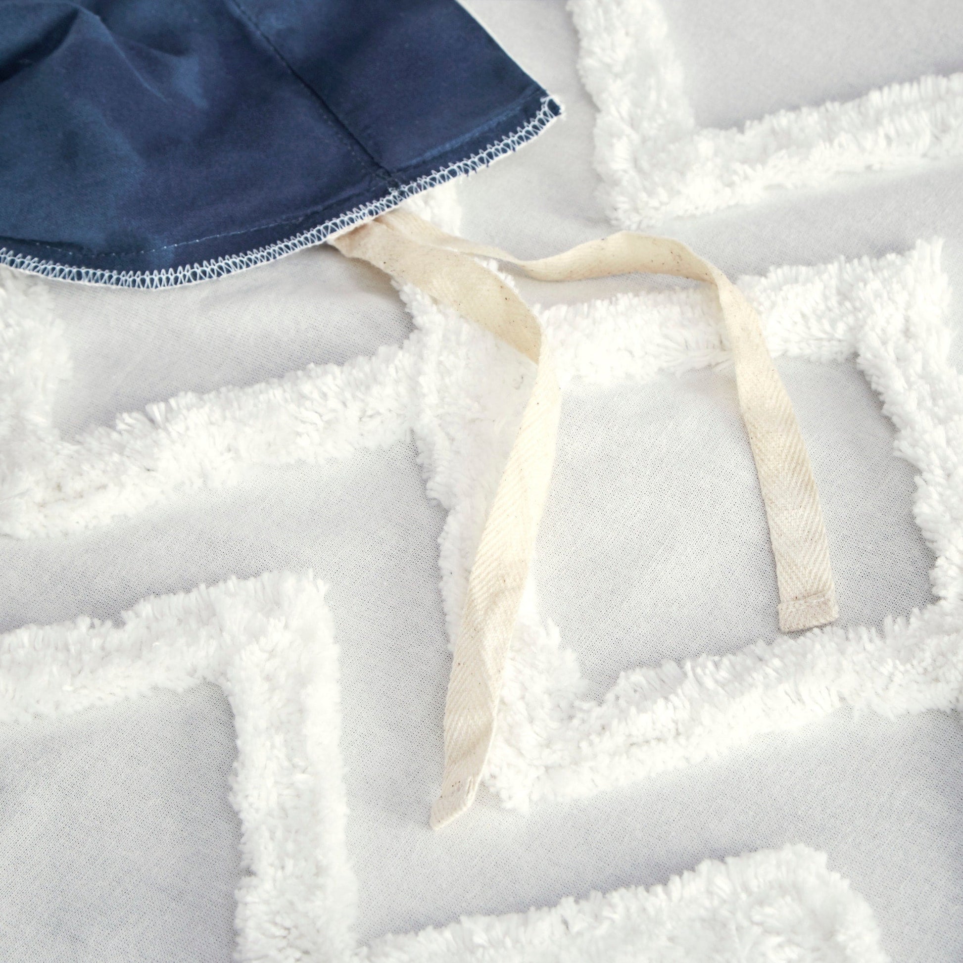 - Farmhouse cotton duvet cover set with tufted white chevron chenille