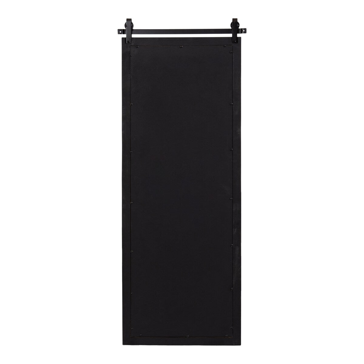 - Contrasting black iron barndoor-style top