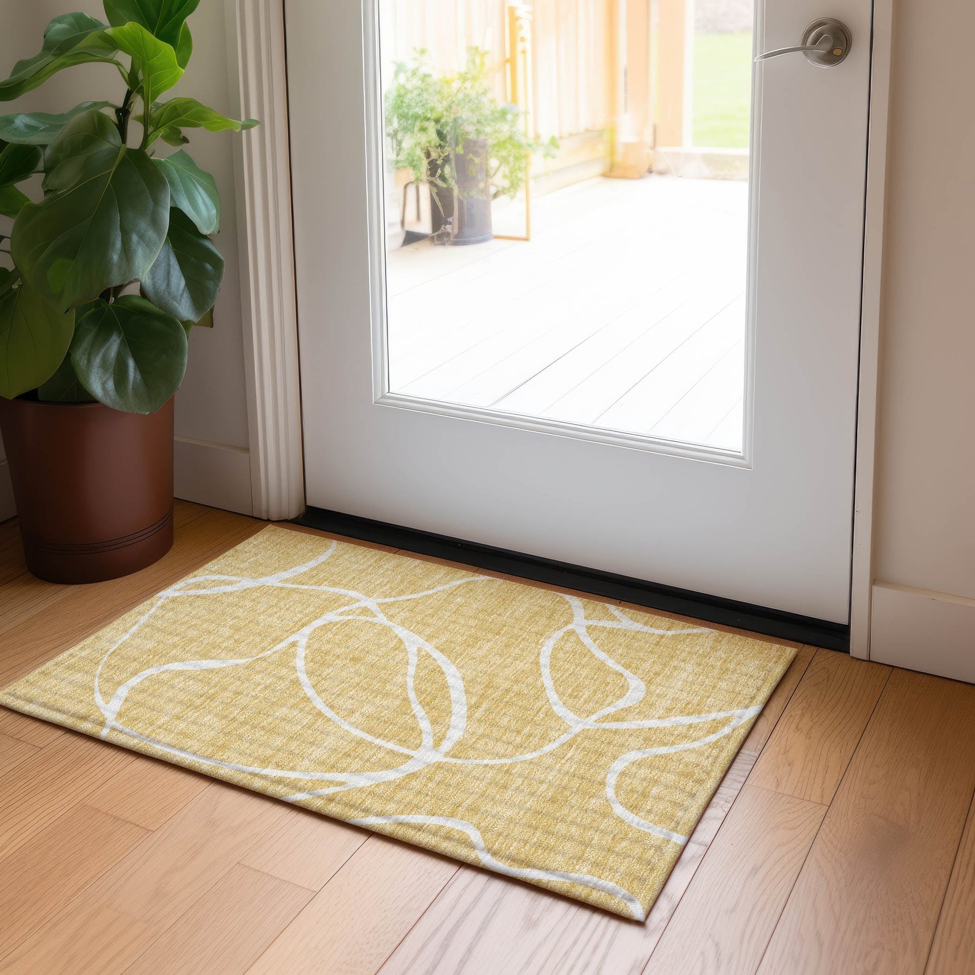 Apportez une touche de fantaisie à vos sols avec notre tapis, orné d'un motif aléatoire et fin, semblable à un ruban, pour une esthétique libre. Les volutes apportent une touche ludique et transitionnelle qui s'intègre à tous les styles de décoration. Stabilisé aux UV, ce tapis est idéal pour une utilisation intérieure comme extérieure. Sa conception ultra-fine lui permet de ne pas encombrer votre espace. Adapté aux familles et aux animaux, il est également lavable en machine pour un entretien facile. Tous les tapis exposés à une lumière intense et directe du soleil pendant de longues périodes peuvent perdre leur couleur avec le temps. Nos tapis sont particulièrement adaptés aux espaces extérieurs couverts et aux zones non couvertes avec moins d'ensoleillement direct. Leur profil ultra-fin permet un séchage rapide après une pluie ou un nettoyage en extérieur. Les tapis de plus grande taille peuvent ne pas passer dans une machine à laver domestique. Ils peuvent être lavés dans une machine à laver professionnelle ou rincés à l'eau savonneuse à l'extérieur. Séchage à l'air libre, pas en machine. Bien que chaque tapis soit doté d'un envers antidérapant, un coussin supplémentaire ou des zones à forte adhérence peuvent nécessiter un sous-tapis supplémentaire.