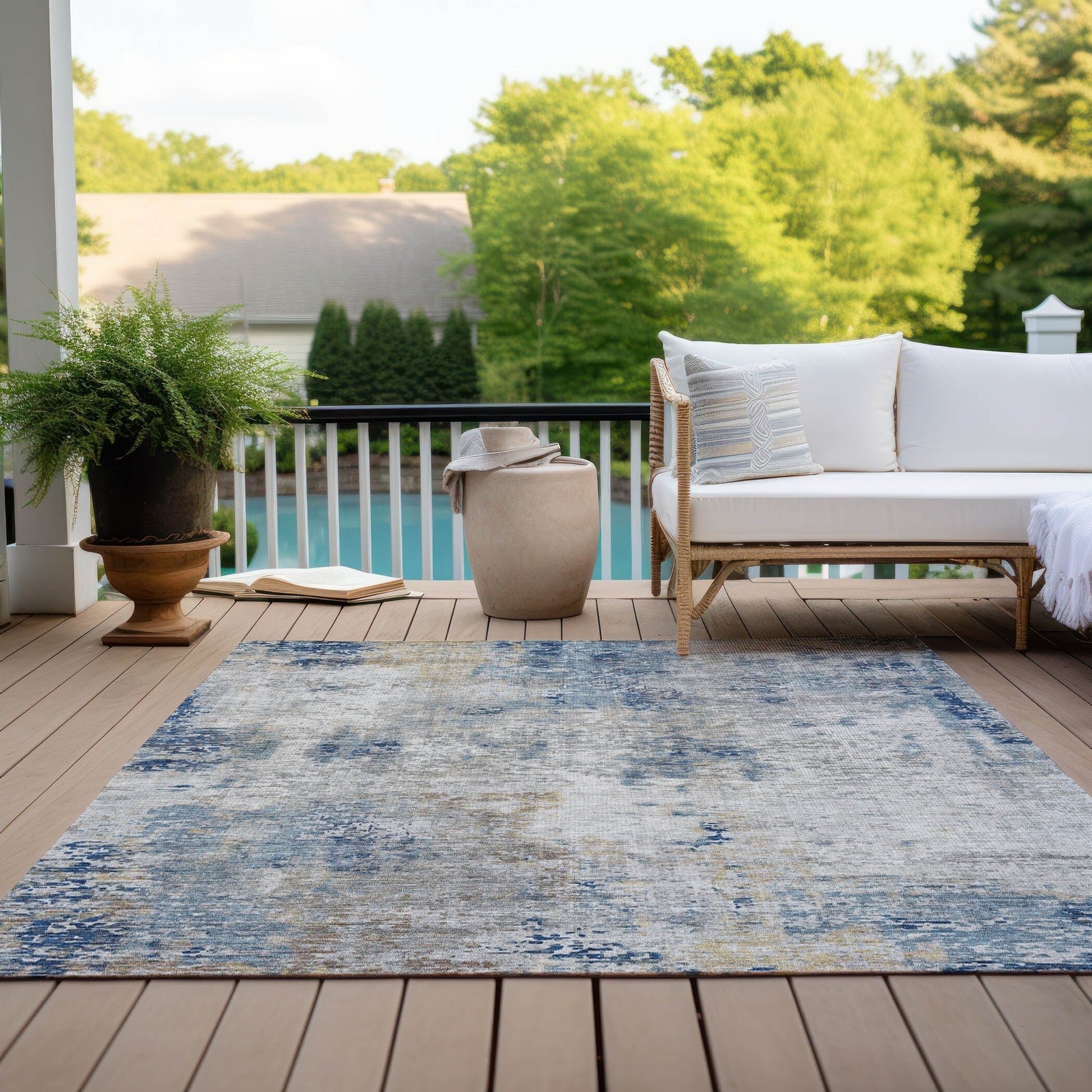 Décorez vos sols avec notre tapis, aux motifs abstraits et fantaisistes alliant transition et modernité. Son design unique apporte une touche de créativité et de gaieté à votre décoration. Stabilisé aux UV pour une longue durée de vie dans tous les environnements, ultra-fin pour une manipulation facile, lavable en machine pour un entretien facile et idéal pour les familles et les animaux de compagnie. Son profil ultra-fin permet un séchage rapide après une pluie ou un nettoyage extérieur. Stabilisé aux UV pour une utilisation intérieure et extérieure. Tous les tapis exposés à une lumière intense et directe du soleil pendant de longues périodes peuvent perdre leur couleur avec le temps. Nos tapis sont particulièrement adaptés aux espaces extérieurs couverts et aux zones non couvertes avec un ensoleillement plus faible. Les tapis de plus grande taille peuvent ne pas passer dans une machine à laver domestique. Ils peuvent être lavés dans une machine à laver professionnelle ou rincés à l'eau savonneuse à l'extérieur. Séchage à l'air libre, pas en machine. Bien que chaque tapis soit doté d'un envers antidérapant, un coussin supplémentaire ou des zones à forte adhérence peuvent nécessiter un sous-tapis supplémentaire.