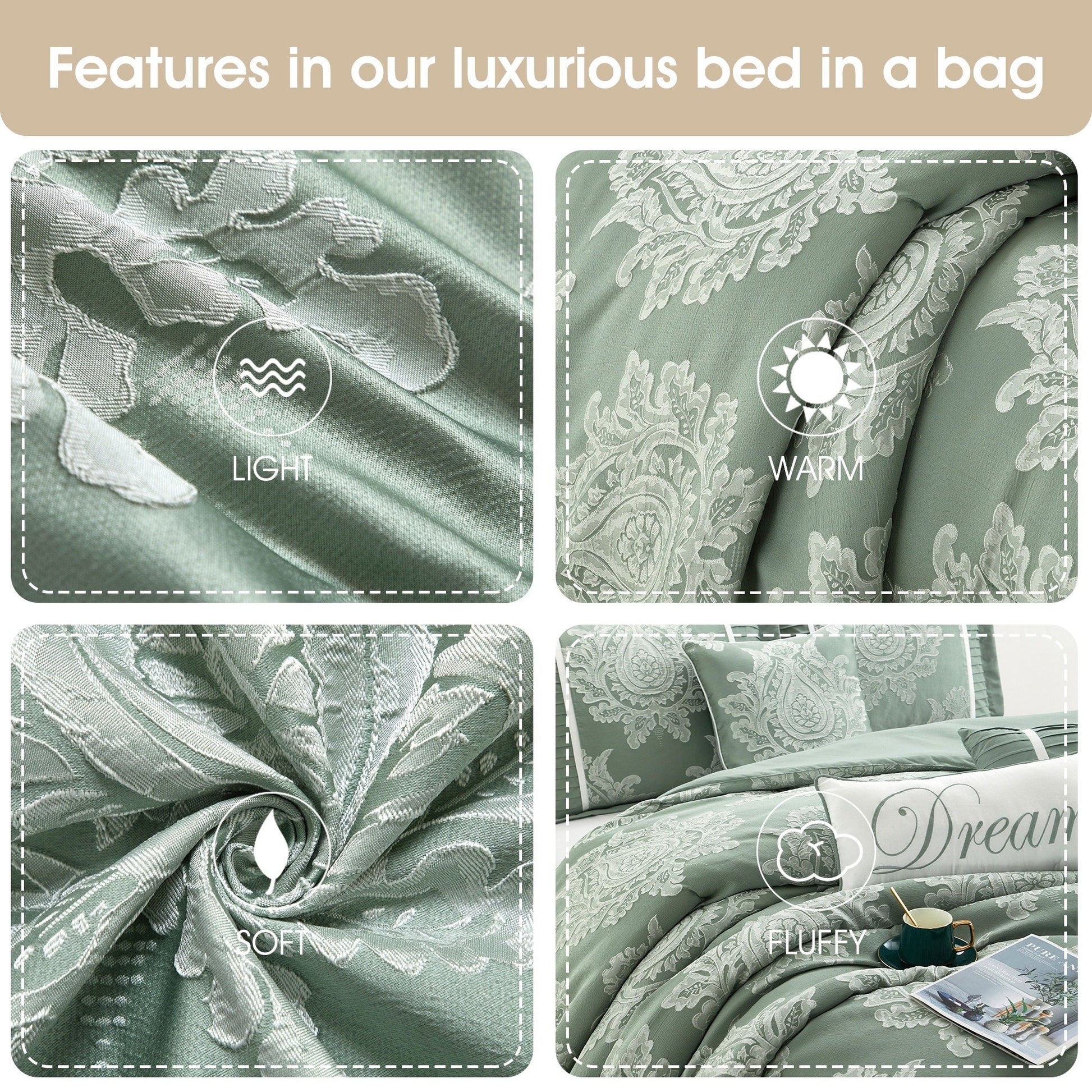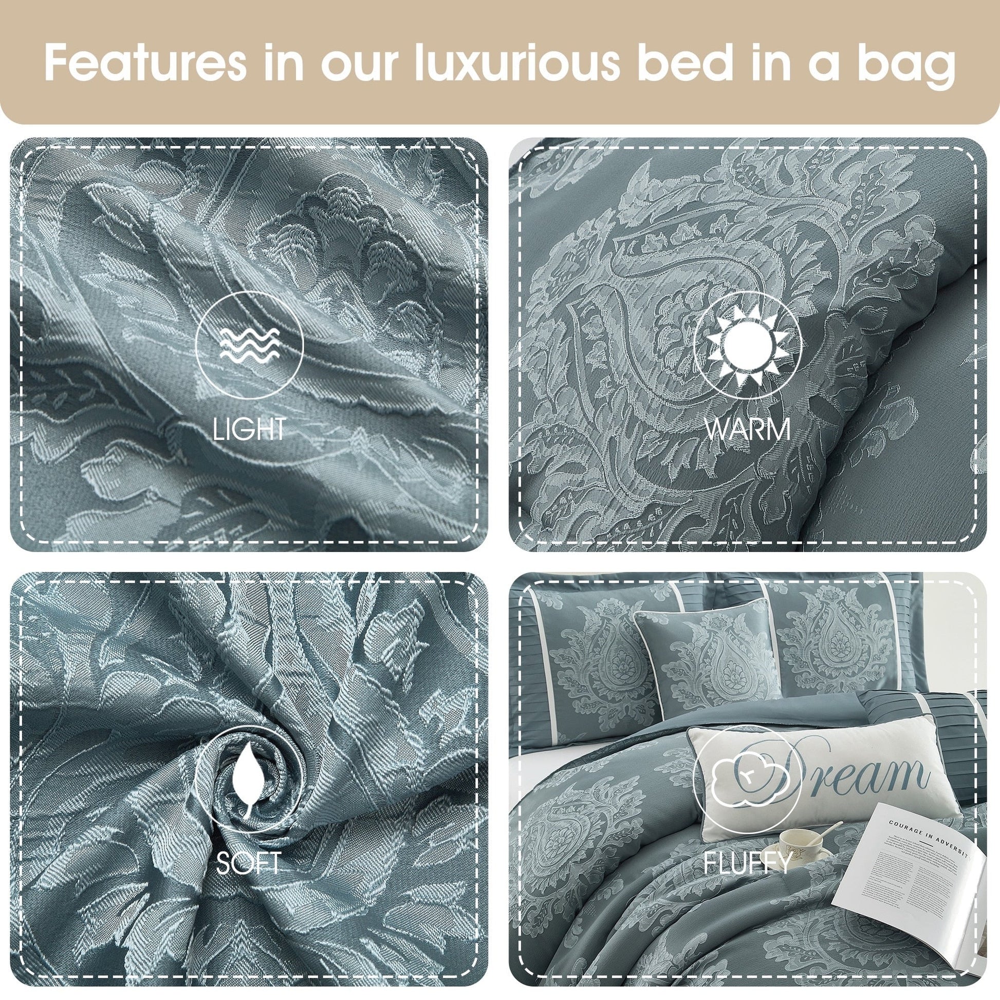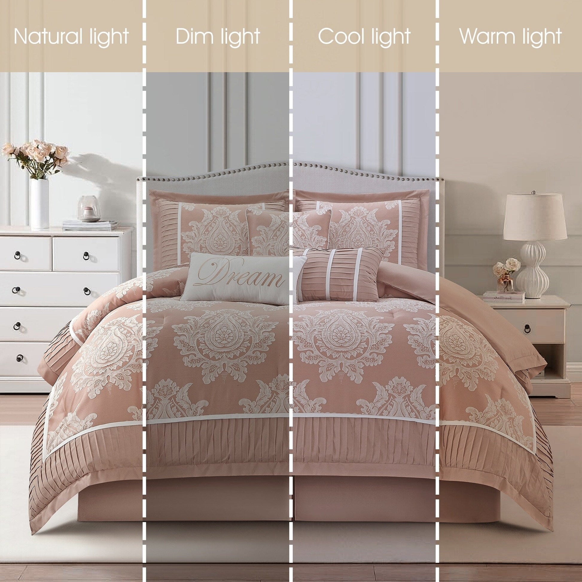 - Caractéristiques : Design damassé élégant et palette de couleurs neutres pour compléter n'importe quel décor de chambre traditionnel/glamour