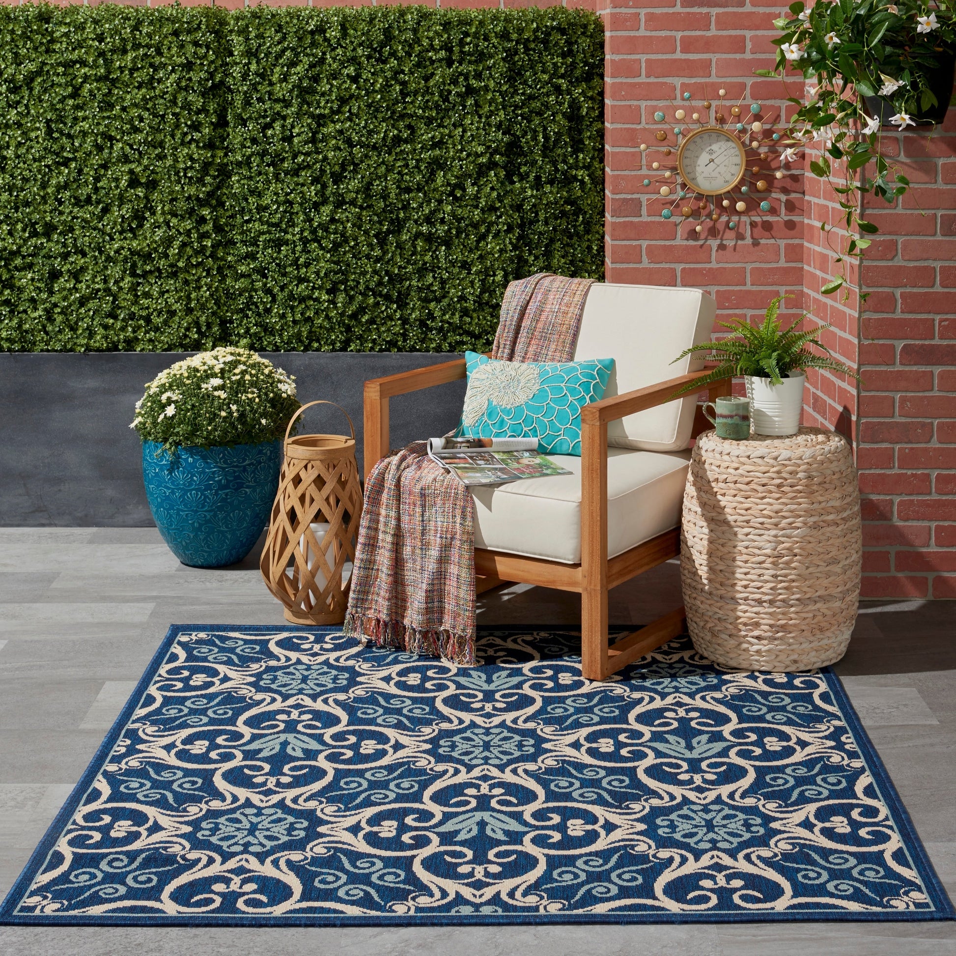 Intégrez la beauté luxuriante et colorée des Caraïbes à votre intérieur avec ce tapis tissé de qualité, pour l'intérieur comme pour l'extérieur. Avec ses motifs botaniques variés et ses formes géométriques tout en courbes aux tons intenses, ce tapis transforme instantanément n'importe quel espace. Son velours bouclé apporte texture et profondeur, tandis que son entretien facile en fait le tapis idéal pour les zones de passage, à l'intérieur comme à l'extérieur.