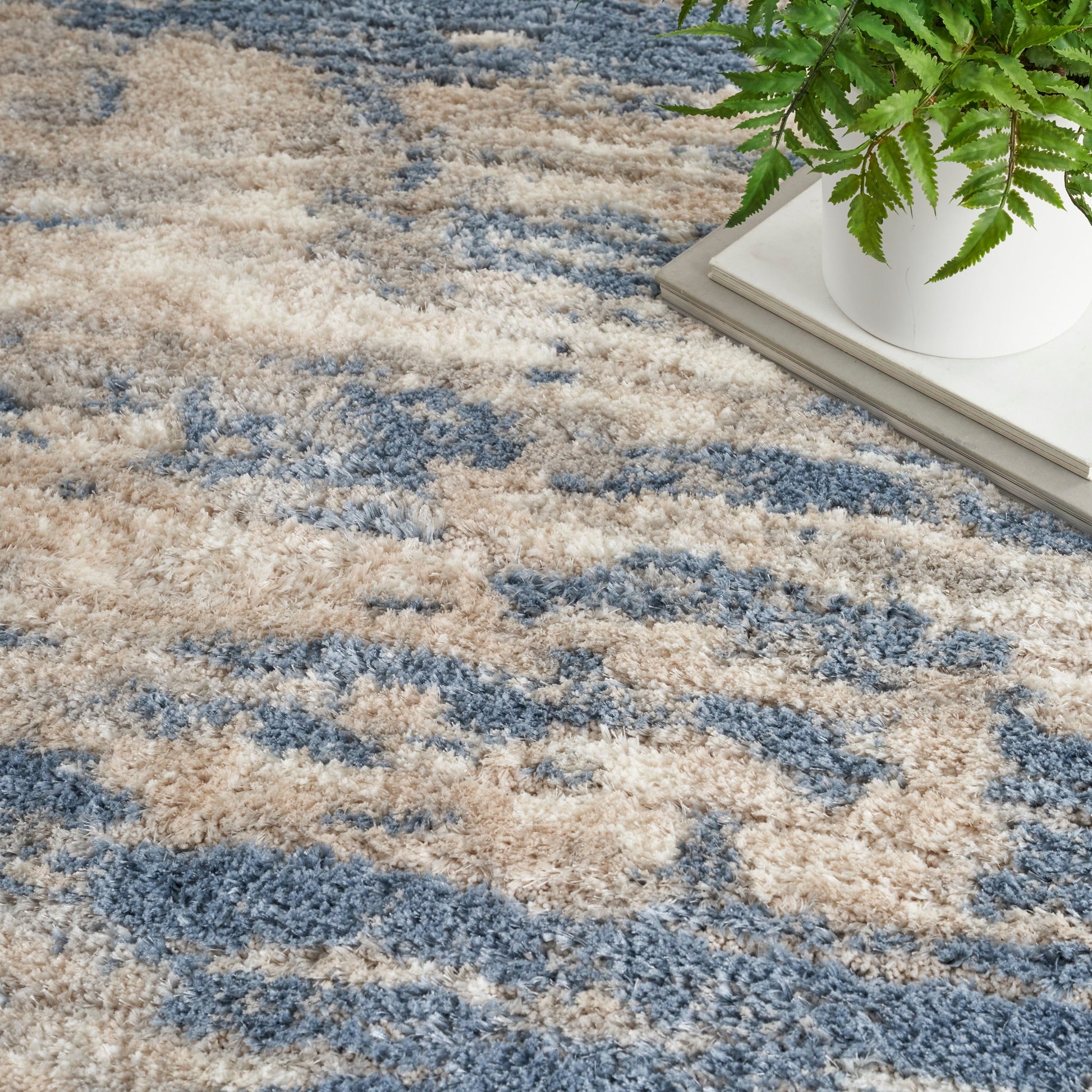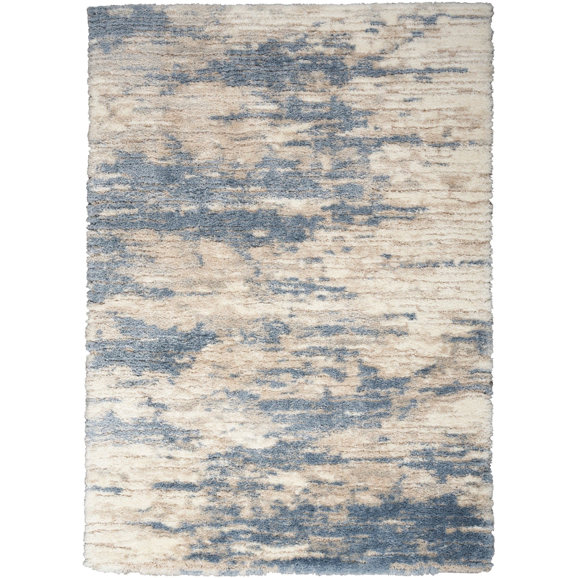 Invite a sense of calm to your home with the plush texture of this shag rug from the Luxurious Shag Collection. In neutral ivory and blue, it effortlessly complements a variety of modern and contemporary styles. Made from wonderfully soft polyester in a thick, 1.25' pile.