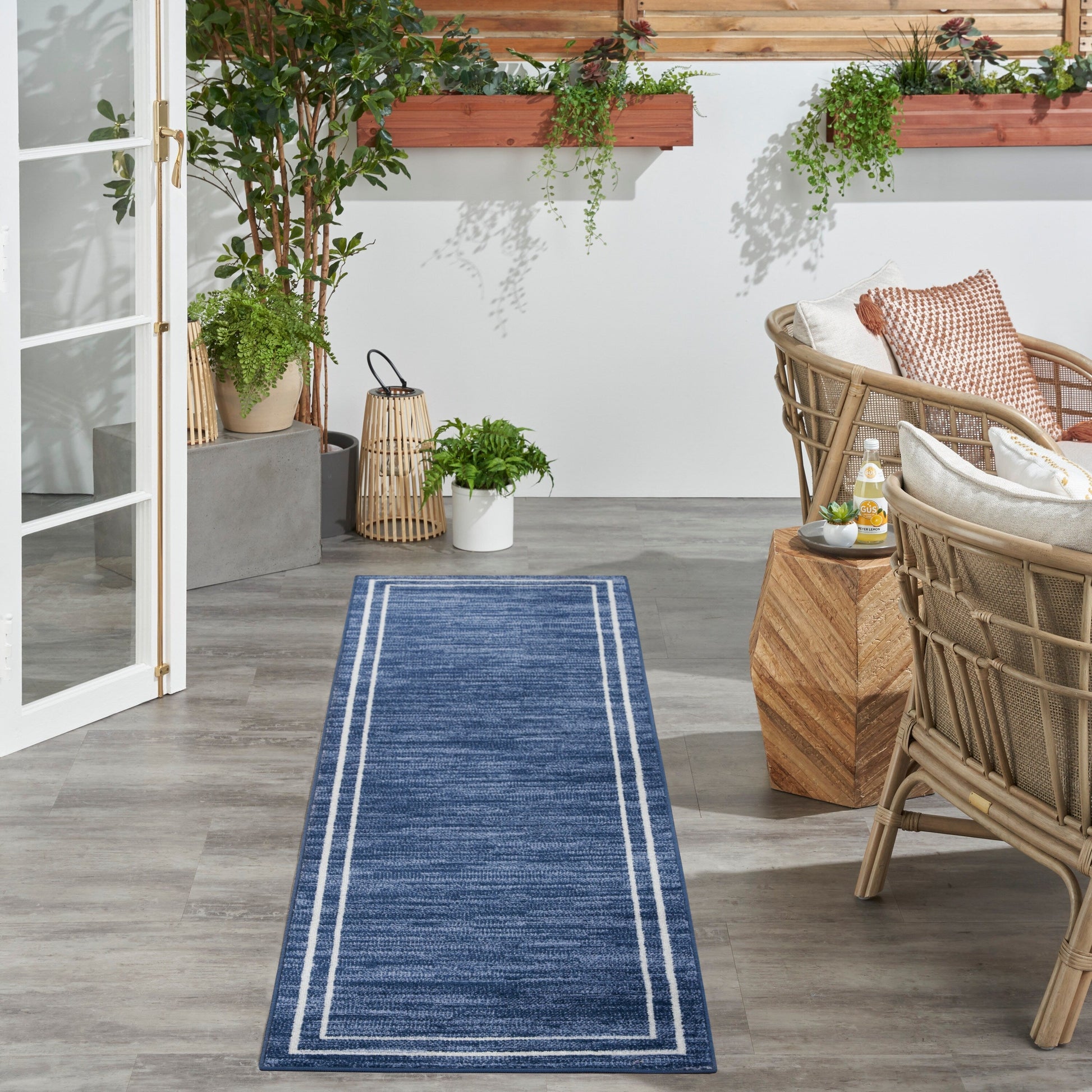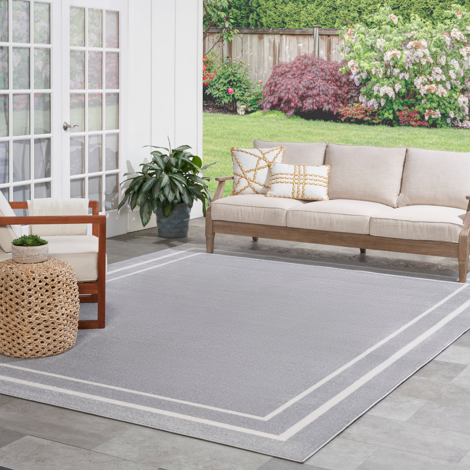 - Tapis d'extérieur contemporain bordé pour définir les zones de conversation