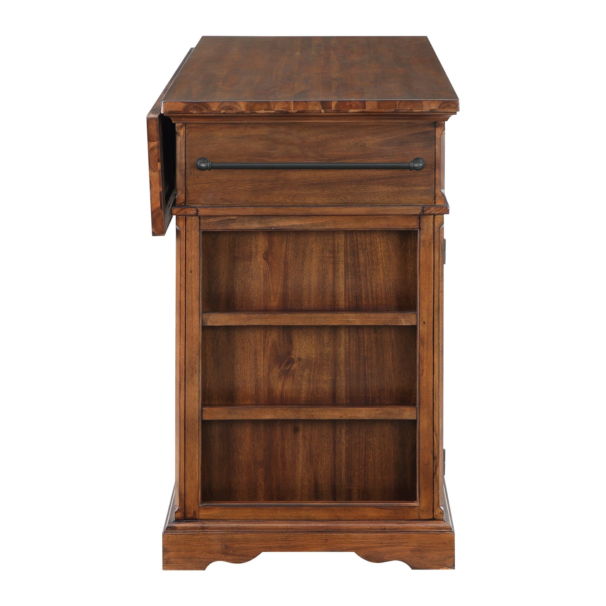 Ajoutez la chaleur et le charme du style campagnard à votre intérieur grâce à notre îlot central de cuisine. Grâce à ses 3 tiroirs, vos ustensiles sont à portée de main. Rangez vos grandes casseroles, bols ou appareils électroménagers dans notre spacieuse armoire à trois portes avec 2 étagères réglables. Rangez vos plaques à biscuits et planches à découper grâce aux étagères verticales pratiques. Les petites épices sont exposées et à portée de main grâce aux étagères extérieures situées juste sous un porte-serviettes bien positionné. Fabriqué en bois massif et placage, il présente une finition peinte en 8 étapes pour une durabilité accrue. Livré en trois cartons, assemblage requis.