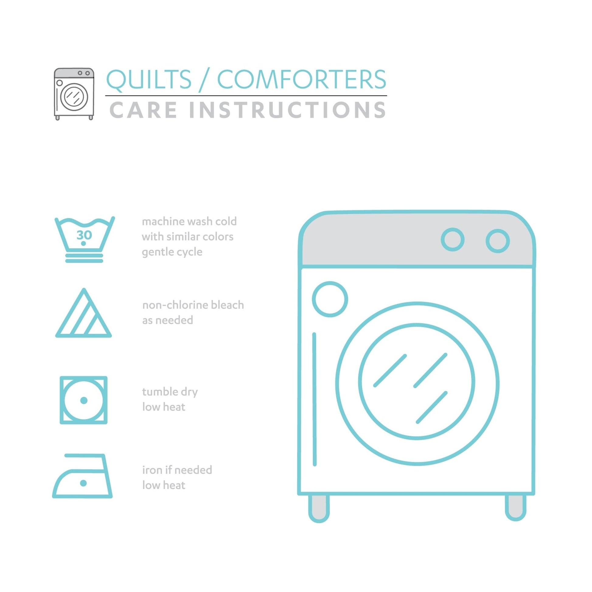 - Séchage en machine à basse température, repassage léger si nécessaire.