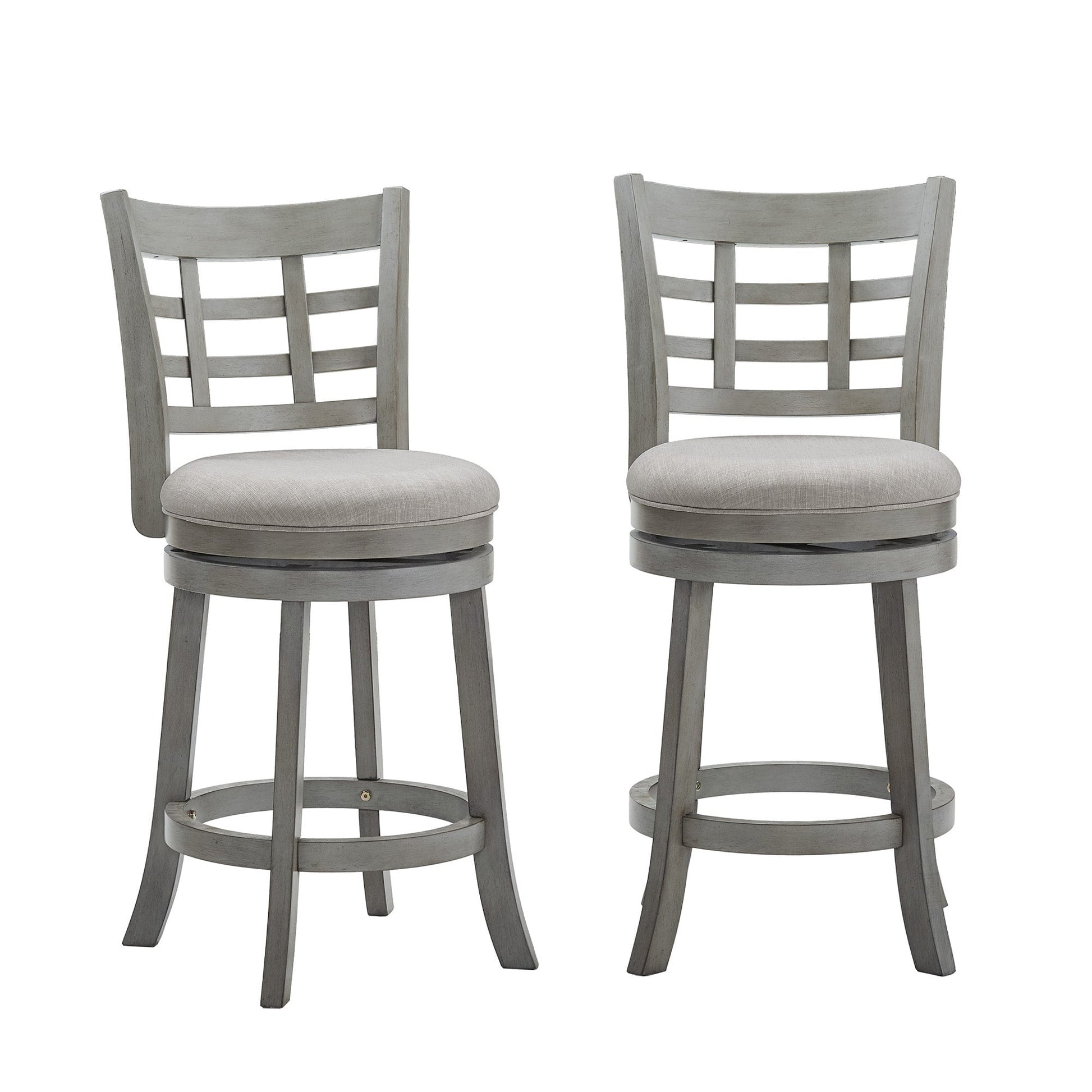 Constructed of durable rubberwood, this Panel Back Swivel Stool displays a beautiful, classic style and offers comfortable support for everyday dining. A rich wood finish completes the chair's frame, while a footrest and upholstered seat provide improved comfort for daily use. The swivel function of this stool provides advanced mobility and makes it easy to have a casual conversation with friends and family during mealtime. The curved back design adds additional support, so you can look forward to sitting in this seat.