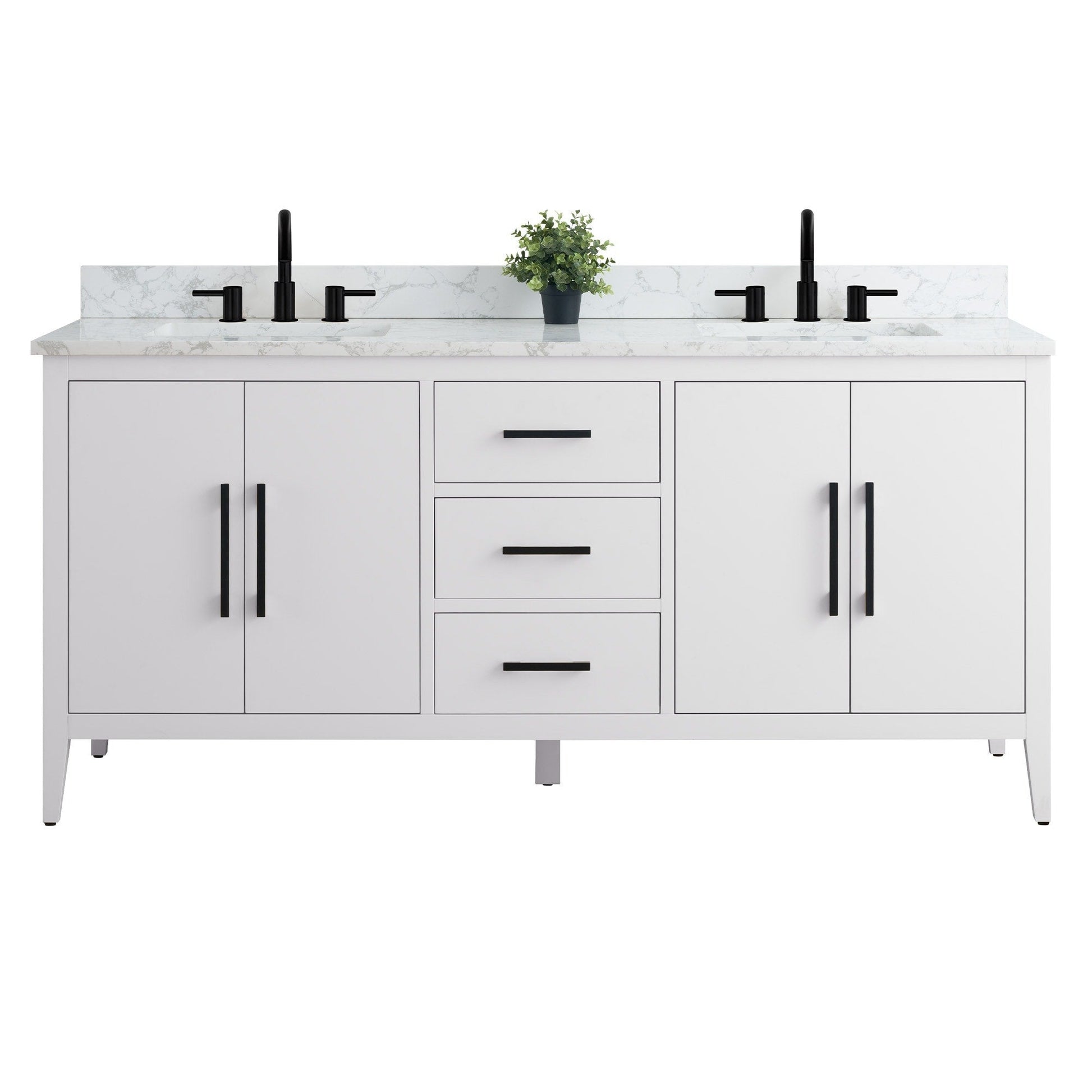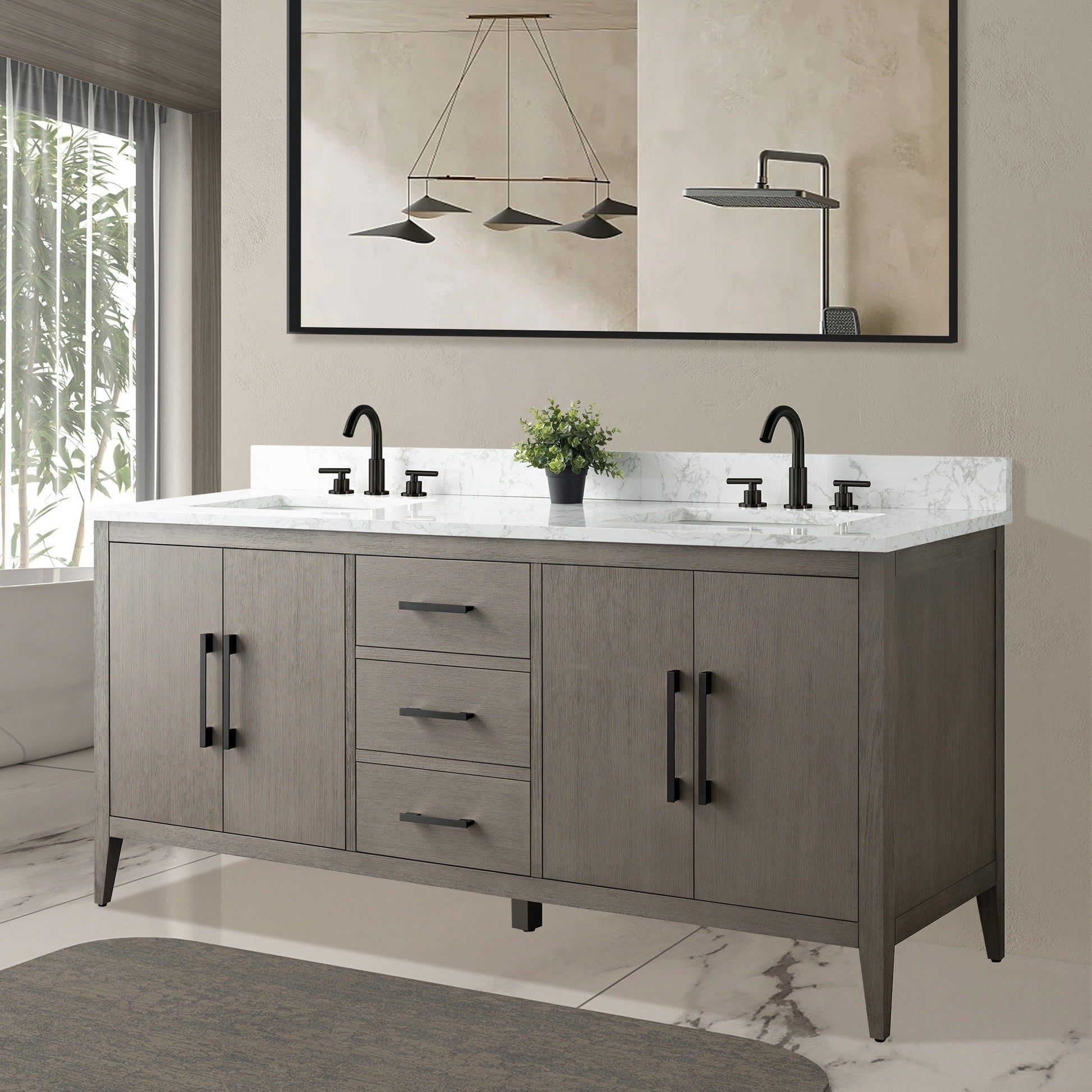 Meuble-lavabo double vasque Vanity Art 72 avec plateau en marbre reconstitué