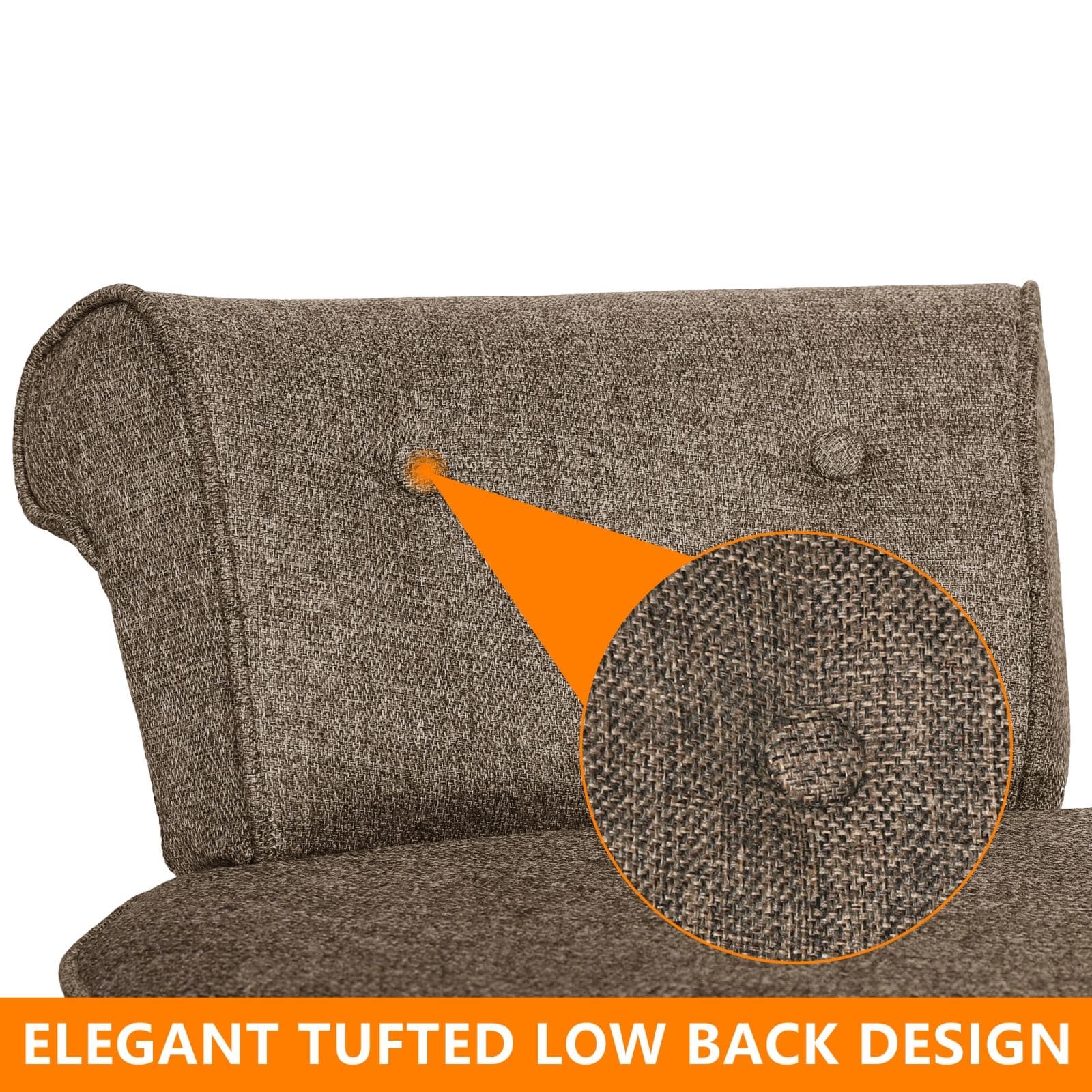 - Tufted low back and round seat design