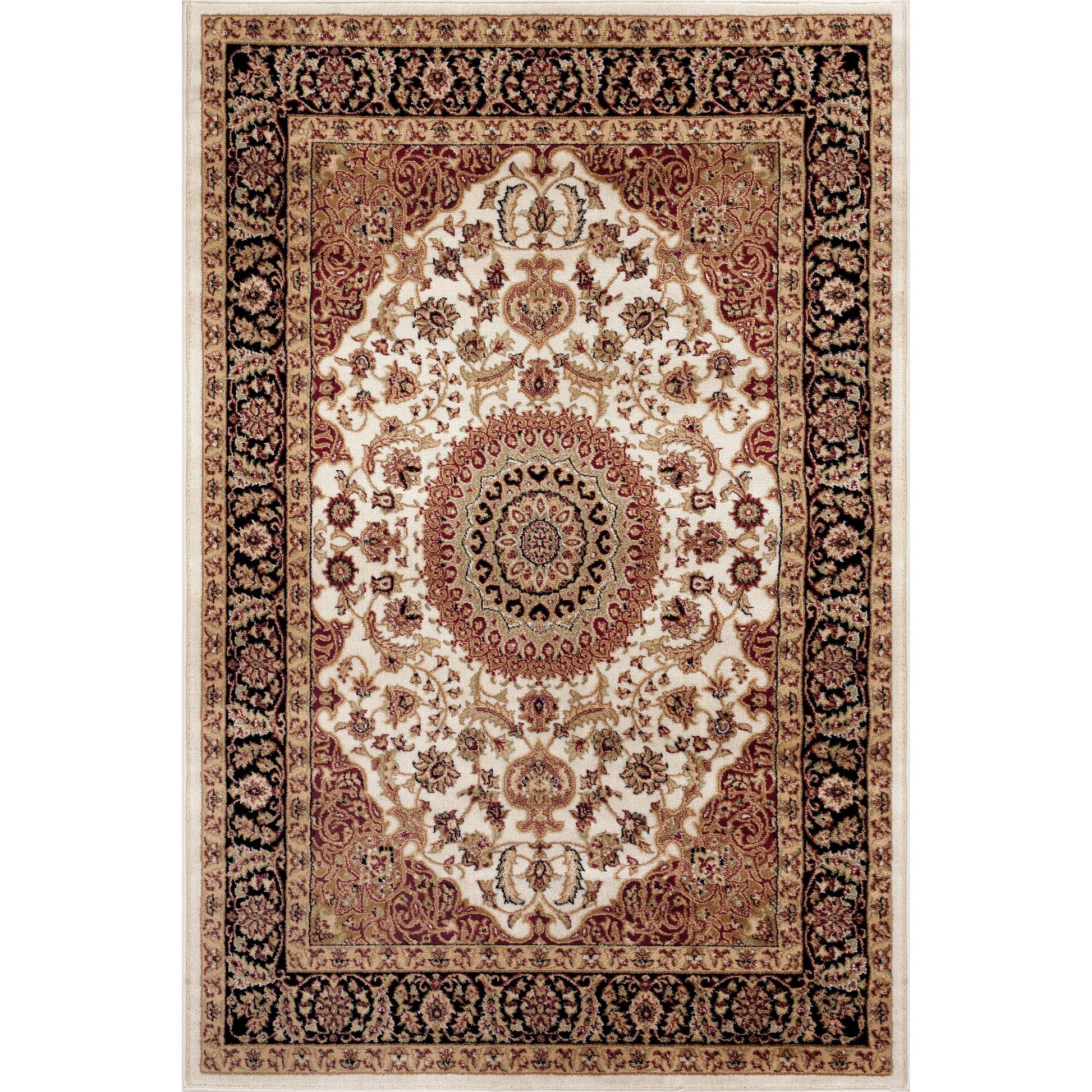 Découvrez notre captivant tapis médaillon oriental traditionnel, soigneusement confectionné pour allier allure contemporaine et charme intemporel, idéal pour sublimer votre intérieur. Fabriqué en polypropylène de haute qualité et tissé à la machine avec précision, ce tapis arbore un fascinant motif médaillon oriental traditionnel dans des tons riches de bordeaux, noir, crème, vert, beige et moutarde. Offrez-vous le luxe de ses poils moelleux de 1 cm d'épaisseur, offrant un toucher réconfortant sous les pieds et transformant n'importe quelle pièce en un havre de paix élégant. Rehaussé d'un envers en jute résistant, ce tapis reste un point focal captivant tout en associant harmonieusement différents motifs pour s'adapter à votre style de décoration. Sublimez votre intérieur avec cette pièce d'exception sophistiquée : plus qu'un simple tapis, c'est un symbole d'élégance moderne. Achetez dès aujourd'hui et découvrez le complément idéal pour votre intérieur contemporain.